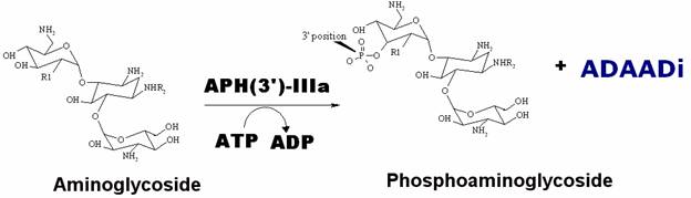 Aminoglycosides are potent inhibitors of protein translation in bacteria. They bind to 16S RNA and inhibit the translation machinery. Of course, bacteria have evolved many mechanisms to overcome this effect. One of the ways they do it is by using an enzyme called Aminoglycoside phosphotransferase. This enzyme transfers the phosphate group to the aminoglycoside and in this process generates two molecules: i) the well-characterized phosphoaminoglycoside; ii) the uncharacterised ADAADi.
