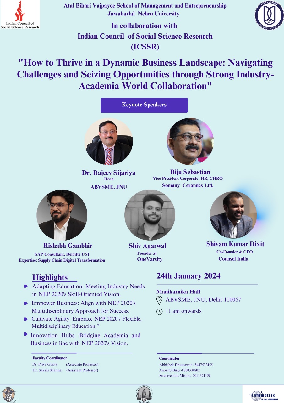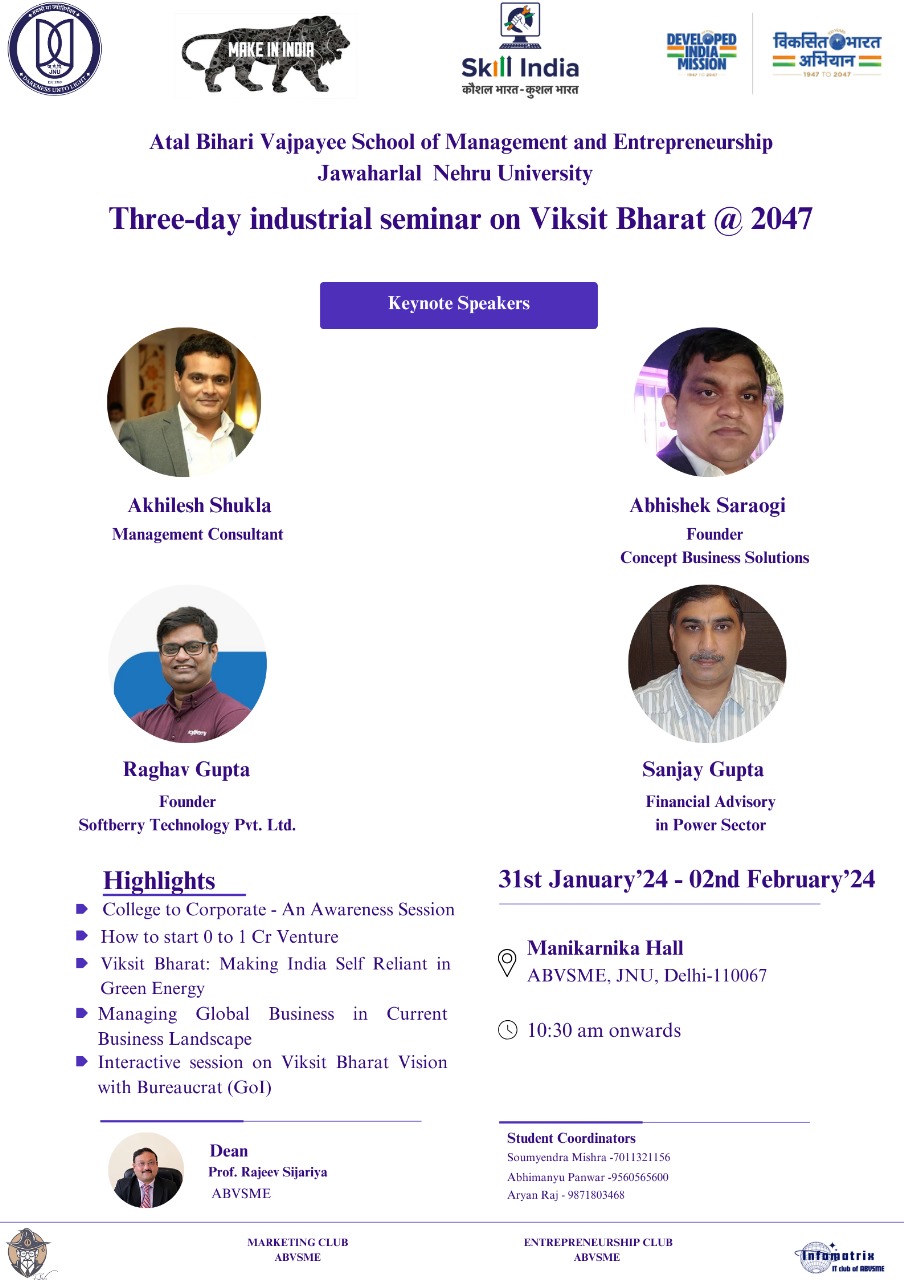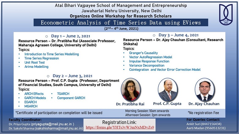 Atal Bihari Vajpayee School of Management and Entrepreneurship (ABVSME), Jawaharlal Nehru University organisedOnline Two-week Faculty Development Programme from 20th July – 31st July, 2020 On COVID -19 New Age Teaching Pedagogy: Innovative Tools, Techniques and Research Methods for Efficient Business Management Teaching in Digital Era